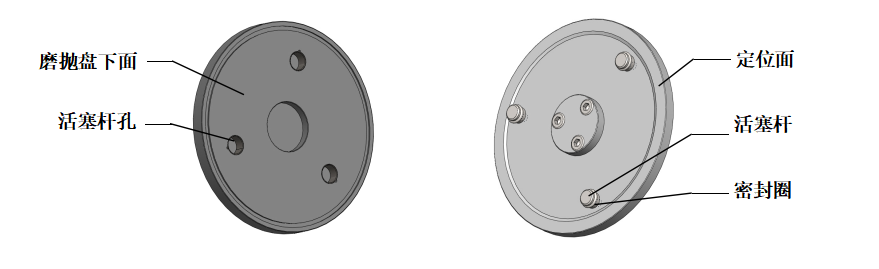 01 磨拋盤可快速更換,兩手拿住磨拋盤輕輕上提即可取下來;將另一個磨拋盤兩手拿平,目測磨拋盤的三個活塞桿孔與三個活塞桿基本對應(yīng)時落下,感覺其中一個孔對應(yīng)時,輕微擺動磨拋盤使另兩個也對應(yīng)后將盤持平插入,再用手控壓一下,使磨拋盤下面與磨拋座的定位面完全接觸。