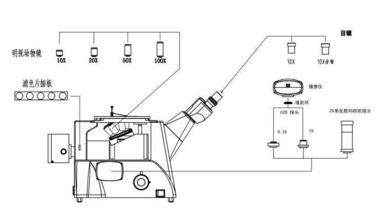 鉸鏈式雙目鏡筒,45°傾斜;瞳距調(diào)節(jié)范圍53~75mm. |